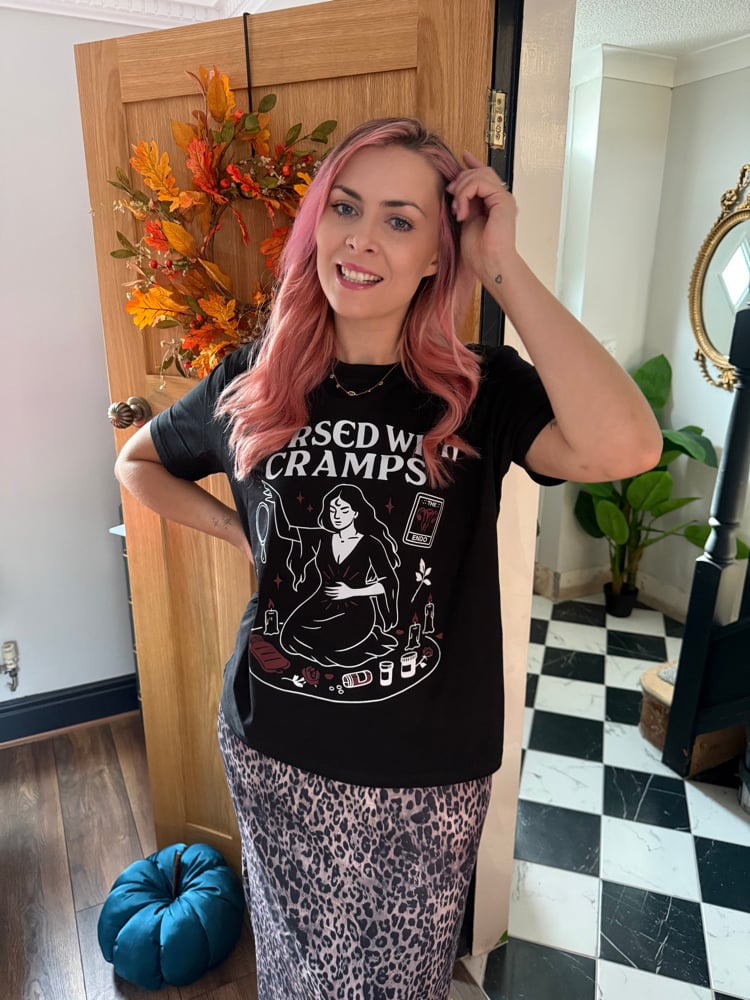 The Cursed With Cramps tee is your new go to for comfort, chaos, and a little witchy magic.